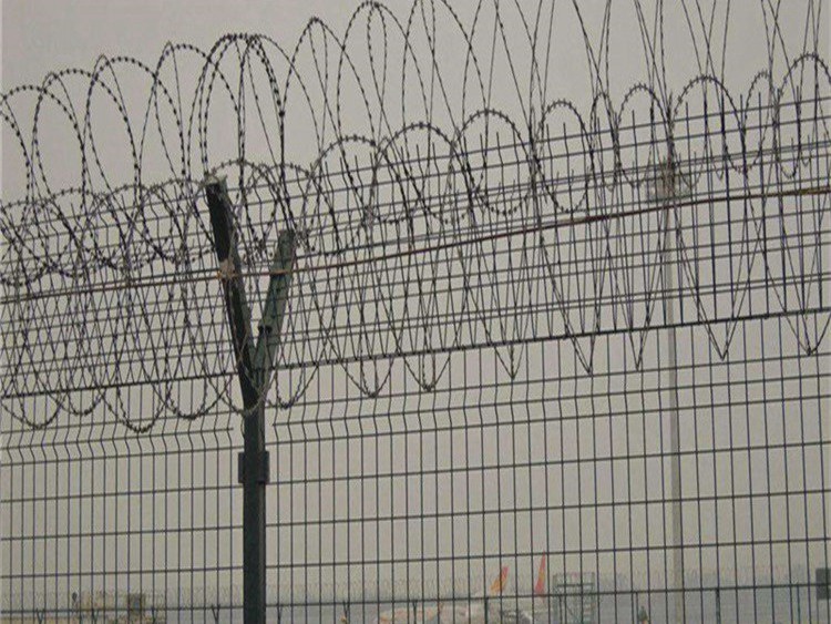 機場防御圍界網不僅是一種簡單的防護網和隔離網,它還可以設置在公路、橋梁等多個地方,能夠起到維護交通秩序,防止交通意外的發生和美化城市樣貌的功能。在機場護欄網頂部安裝刀片刺籠,很好的增加了安全防護性能,由V形支柱、焊接網和緊固件組成,不易變形。