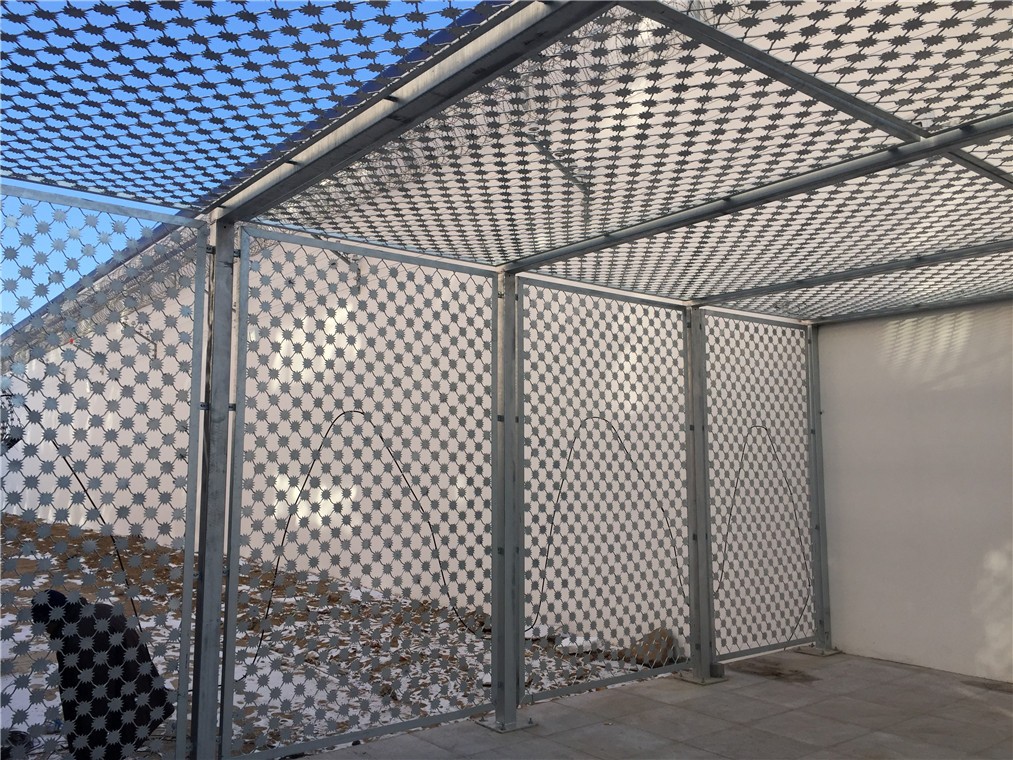 (1)AB通道隔離網總長度60米、高為5米的方形不銹鋼或墨綠噴塑梅花刺網,柱中心距2500mm,分為上下兩片,立柱上端封閉。