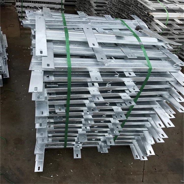 鐵路刺絲滾籠支架為立柱支架采用50*30mm, 壁厚2mm,矩形鋼管和寬50mm厚度4.5mm長度分別為246mm和428mm的兩塊0235扁鐵焊接制作。距形鋼管上部焊接掛鉤采用長度30mm絲徑5mm冷拔鋼筋制作,加密支架采用樣與立柱支架的矩形鋼管制作,表面進(jìn)行熱鍍鋅處理,鍍鋅量270g/。階梯文架與立柱支架相應(yīng)采用材料一致,只是高度為1005mm,普通立柱支架為730mm,一般3m間距中間按一處加容支架以增牢堅(jiān)固性支架與防護(hù)柵欄采用支架抱箍連接。