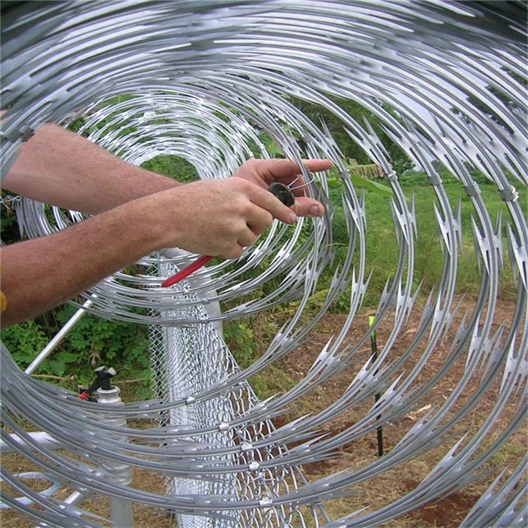 刀刺網每個使用過的人都知道刀片刺繩的使用壽命很長,但是根據材質電鍍、鍍鋅、高鋅、不銹鋼。這里值得注意的是,除了不銹鋼不 會生銹以外但是這款價格會比較昂貴一些,所以大多地方都會選擇熱鍍鋅材質的刀刺網來使用。刀片刺繩是一種金屬,沒有自我清潔和自我修復的功能。需要使用者定期對其進行人工維護,修復和清潔。