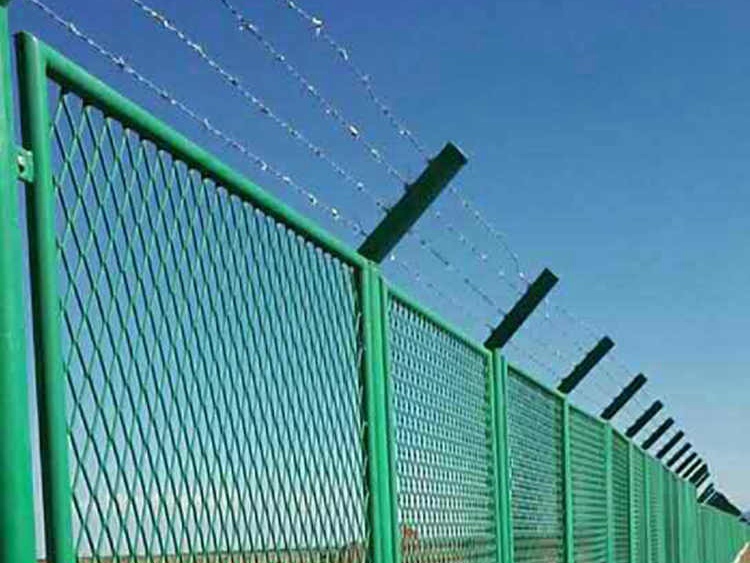 綜合保稅區(qū)倉庫圍網(wǎng)也可采用不銹鋼鋼板加工,不銹鋼板沖拉而成的鋼板網(wǎng)產(chǎn)品,它具有網(wǎng)孔均勻。網(wǎng)面平整且摩擦系數(shù)高,強度大,亦于切割加工,制造工件. 色澤光亮,保稅區(qū)圍欄欄,不生銹,經(jīng)久耐用。使用壽命50年。