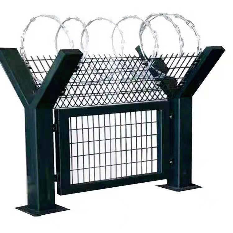 Y型安全防御護網是由折彎網片,V型支架立柱,加強型焊接片網,上面有刀片刺繩(又稱刀刺網,刀片護網)安全防盜連接件組成強度和安全防御性級別很高,被廣泛應用在監獄,機場,基地等安全場所。因立柱外形酷似英文字母Y,所以被稱為 Y型安全防御護網,那么Y型安全防御護網的連接方式有哪些呢?