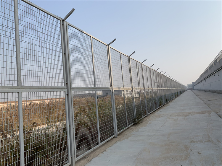 根據《監獄建設標準》(建標139-2010)4.13安全警戒設施的規定,監獄圍墻內外均要設置防攀爬隔離網,隔離網應采用熱鍍鋅+表面噴涂雙重防腐