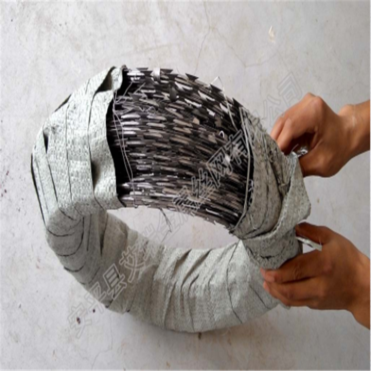 是工程鐵路隔離圍欄的配套產品,在工程鐵路防備隔離柵的上方加裝刺絲滾籠,是較安全配套的流程。刀片刺繩根據安置方法不同可歸納:(蛇腹式)螺旋式刀片刺繩,直線型刀片刺繩,平板式刀片刺繩,刀片刺繩焊接網等。刺繩的起源就是使用于農業,大家根據刺繩將農田歸納不同的小塊。本設施具有防腐、防老化、***曬、***候等優點。比如說許多人在家里院墻上圍上一圈刺繩,必須用在防止有人翻過院墻進入院內。