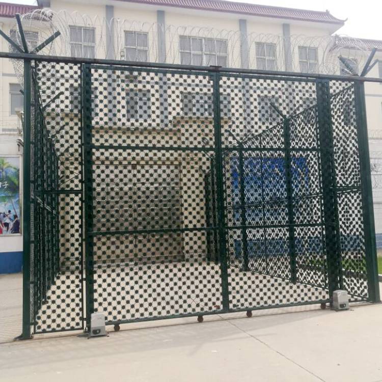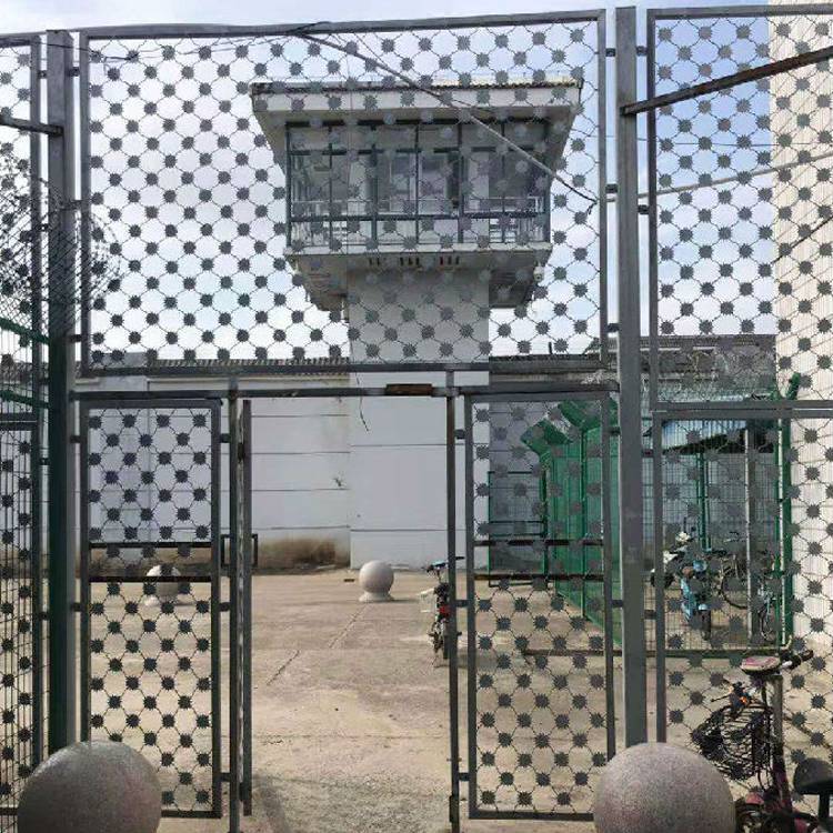 圓柱居多網孔:110*110mm,100*100mm,絲徑:6.0mm,5.0mm,刺片:直徑75mm,厚度1.2mm,14個刺邊框:角鋼50*5mm或者方管40*40*1.5mm及以上規格立柱:常用圓管中114mm*3.0以上,也可以用80*80、100*100mm方管監獄鋼網墻表面處理:一般為浸塑,少部分為熱浸鋅或者噴塑