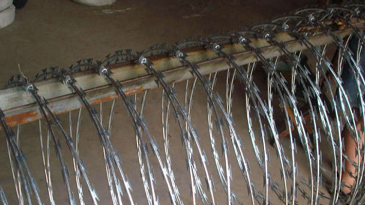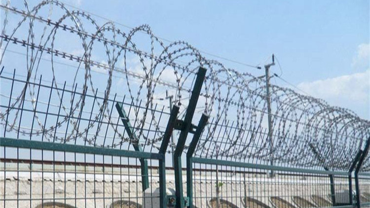 邊境270g上鋅量刺絲滾籠施工方法:清理場地確認硬化程度可直接安裝支架底盤、安裝支架、拉線布置、蛇腹形刀刺網安裝。本工程所用材料主要為蛇腹形刀刺網、安裝支架,按有關規定統一采購并運送至現場,根據施工進度運至現場安裝。