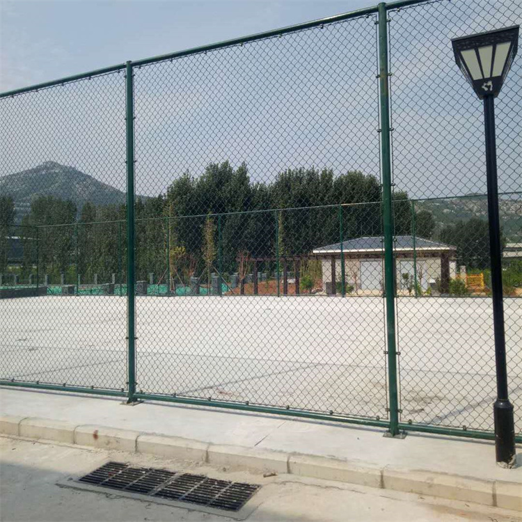 足球場圍網一般是用勾花網編織而成,堅固美觀,而且防攀爬能力是比較強的,產品的特點為靈活性比較強,可以根據要求隨時調整網片的結構、造型以及尺寸,在安裝過程中提供了**大的便利,足球場專用圍網尺寸,1、 包塑絲經:4.0mm 2. 網孔:50mmx 50mm 60mm×60mm3、尺寸:3000mm(亮度)×3000mm-4000mm (高度)4 立桂:直徑75mm園管,壁厚2.5mm5橫柱:直徑60mm圓管,壁厚2mm;足球場圍網顏色:一般多以墨綠色、草綠色,以墨綠色居多是球場圍網的要求1. 圍網建造要堅固,無凸出部分,門把手、門門要隱蔽起來,以免給打球人造成危險。