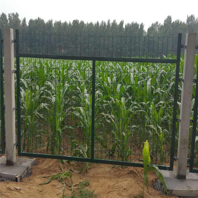 6、柵欄門:柵欄門根據工務、電務等設備檢查和維修施工作業的需要設置。鋼筋混凝土立柱金屬網片防護柵欄可采用單開門或雙開門兩種形式。單開寬度1.5m,雙開寬度3m,其網片形式與防護柵欄保持一致,并通過銷鈾、銷鈾套與立柱連接