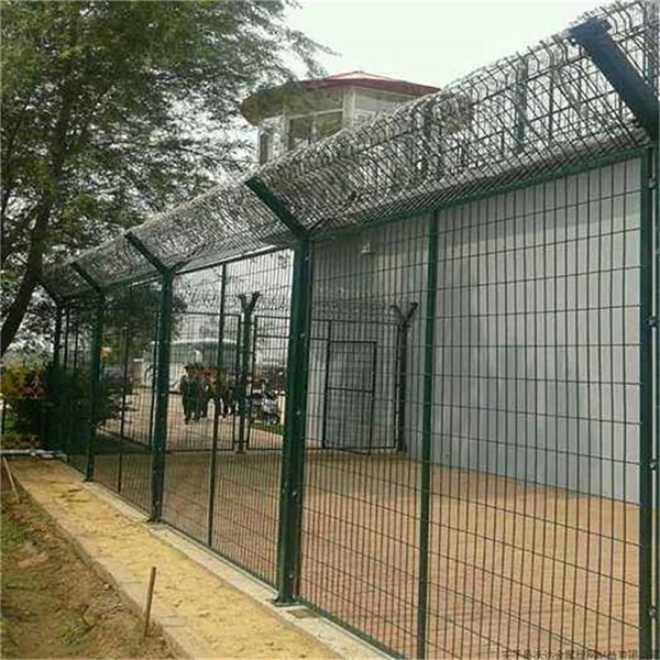 監獄鋼網墻是專用在監獄防護隔離區域的一種鋼絲網,其獨特的造型合適的高度在監獄里邊起到了很好的防護作用,監獄鋼網墻網高一般采用2米,立柱高度2.5米成Y字型,在2米高的網片上邊架上直徑50cm或60cn的刀刺網,整體下米高度2:5米,Y型立柱對于架設刀刺網起到了至關重要的作用,使刀刺網固定的更加牢固,防止犯人攀爬和拉拽刀刺網