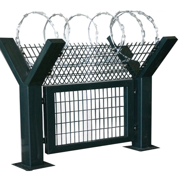 近年來,被廣泛應用在看守所,軍事基地等高安全場所。注;如果在看守所鋼網墻頂部加裝刀片刺絲、刀片刺繩后又很好的地增強了安全防護性能。采用電鍍、熱鍍、噴塑、浸塑等防腐形式。其產品造型美觀、花色多樣,既起到圍欄作用,又起到美化作用。看守所鋼網墻由于具有安全性高、防攀爬能力好,網片連接方式采用特制SBS緊扣件,有效防止人為的破壞性拆卸橫向四道折彎加強筋,使網面強度顯著增加。