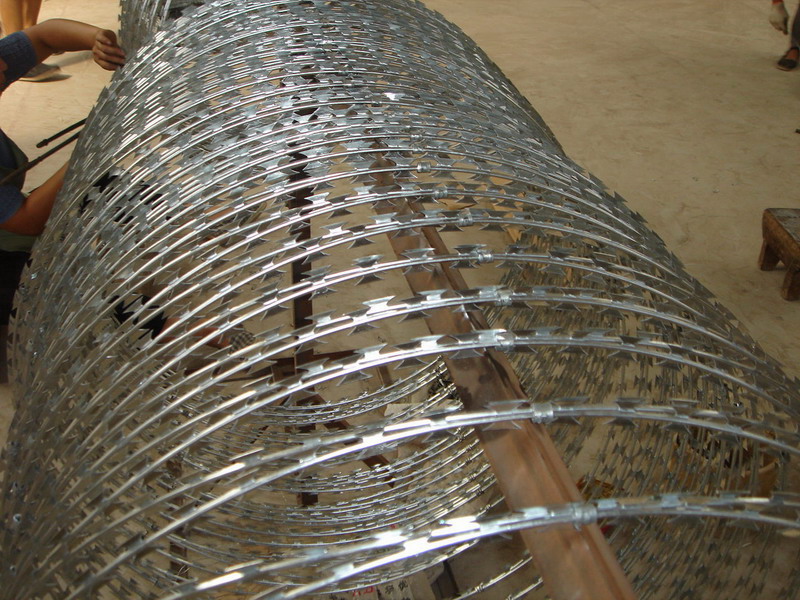 蛇腹形刀刺網(wǎng)施工主要包括以下內(nèi)容:清理場地確認(rèn)硬化程度可直接安裝支架底盤、安裝支架、拉線布置、蛇腹形刀刺網(wǎng)安裝。