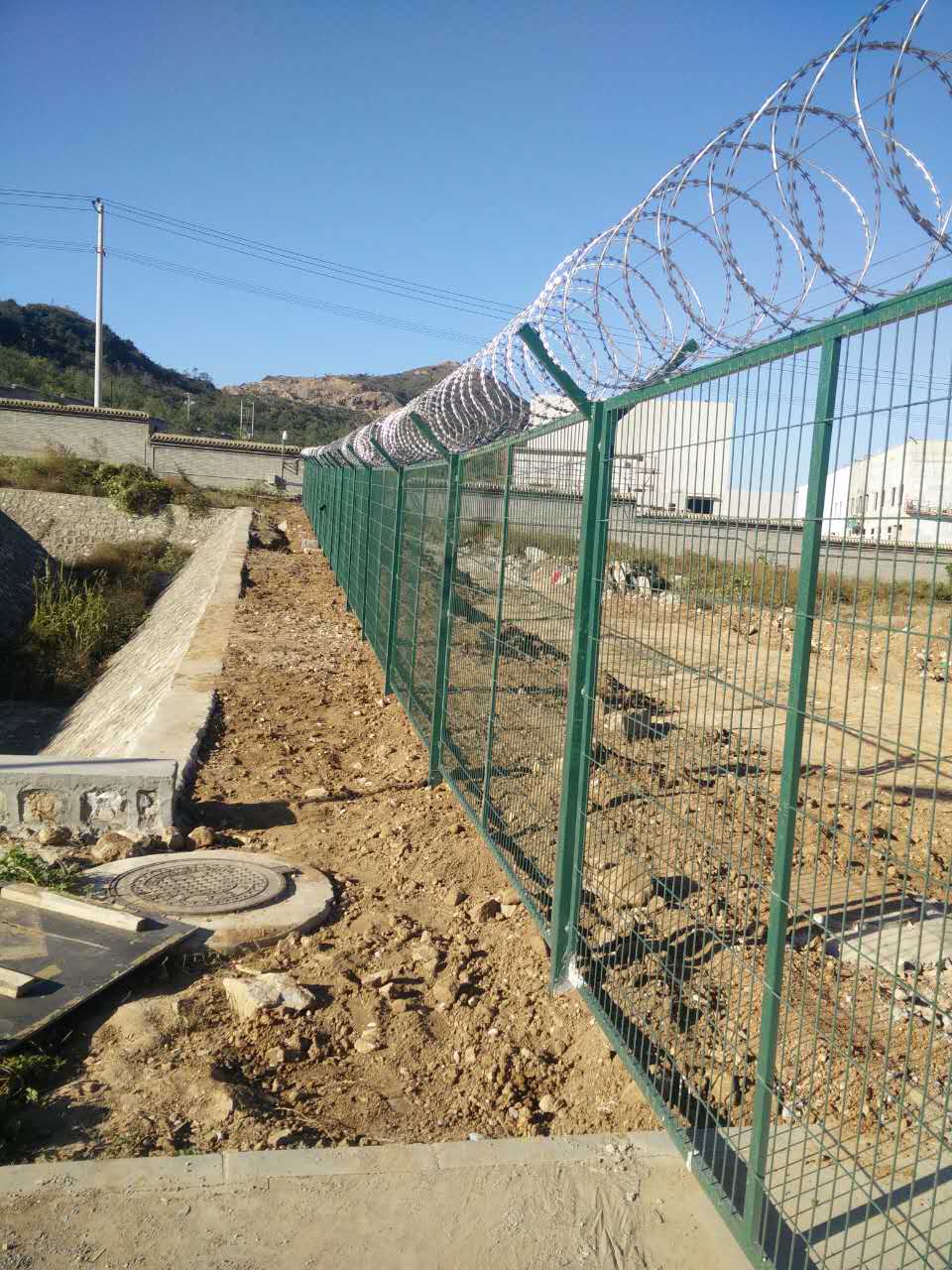 5、立柱規格: 60mmx80mm*3mm、80mmx80mm*3mm、 φ48、 φ60等方管、 圓管;上方為蛇腹型刀刺網500mm、600mm。