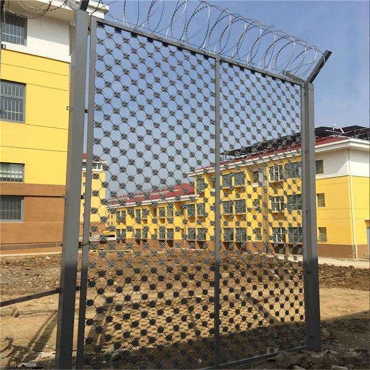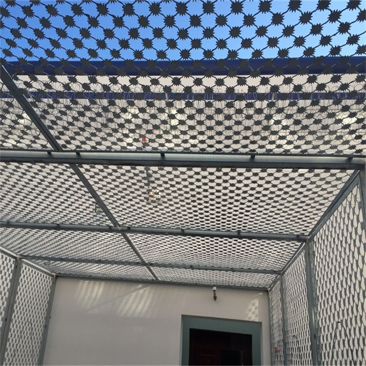梅花刺隔離網又稱作太陽花隔離網墻,是由V型支架立柱,加強型焊接片網,安全防盜連接件和熱鍍鋅刀片刺籠組成,強度和安全防御性級別很高。近年來,被廣泛應用在監獄,軍事基地等高安全場所。注:如果在監獄護欄網頂部加裝刀片刺絲、刀片刺繩后又很好的增強了安全防護性能。