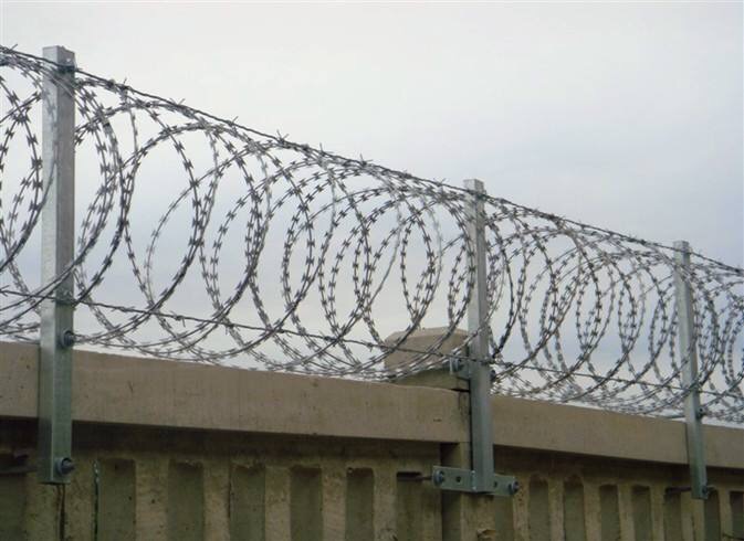 刀片刺網:由銳利尖角鍍鋅鋼板(或不銹鋼)做刀片,高張力鋼絲做芯線組合而成的。由于刺網造形特不易觸摸,因而能達到的防護隔離效果。