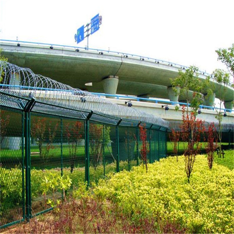 機(jī)場(chǎng)是一個(gè)對(duì)安全性要求高的場(chǎng)所,所以對(duì)于機(jī)場(chǎng)圍界網(wǎng)而言就是牢固的外墻。機(jī)場(chǎng)圍界網(wǎng)又稱(chēng)作Y型安全防御護(hù)網(wǎng),是由折彎網(wǎng)片 V型支架立柱加強(qiáng)型焊接片網(wǎng),上面有刀片刺繩安全防盜連接件組成強(qiáng)度和安全防御性級(jí)別高。被廣泛應(yīng)用在機(jī)場(chǎng),基地等安全場(chǎng)所。