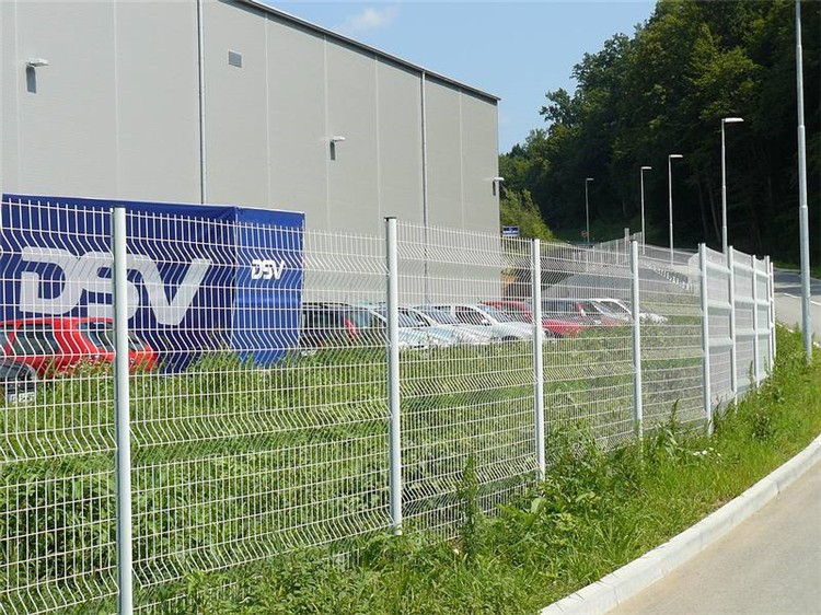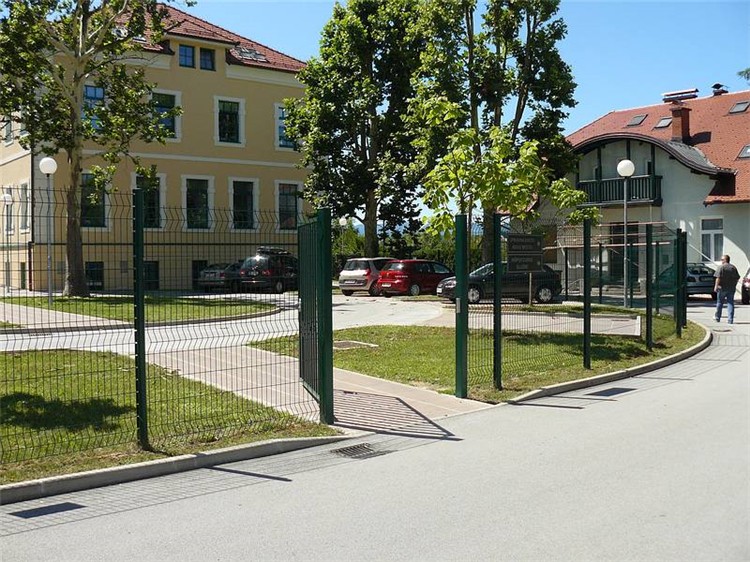 在立柱的意高度將網片嵌入預先設計的凹槽使圍欄成為無法拆卸的整體。