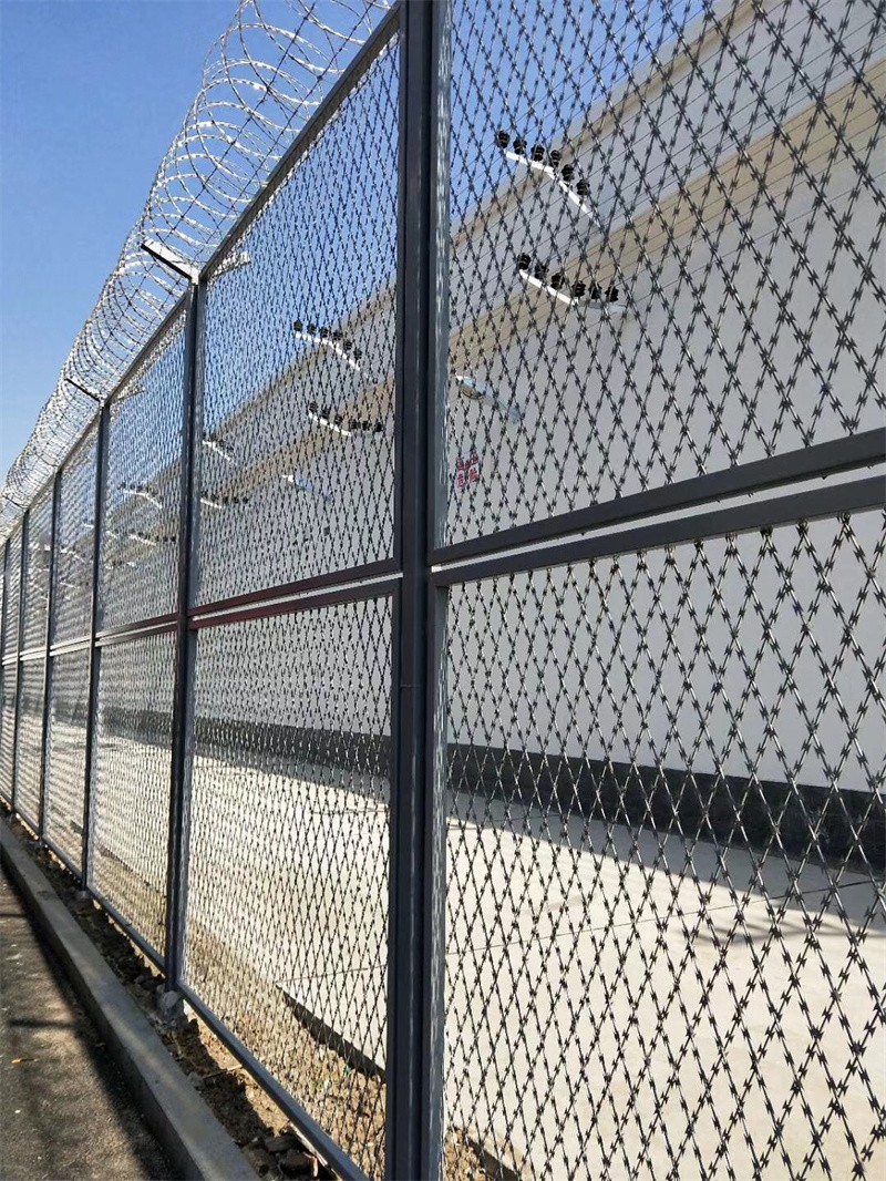 2.5米防攀爬隔離網(wǎng)簡單來說就是防攀爬的,今天先給大家介紹兩款性能比較好的,防攀爬能力比較高的。一款是358密紋隔離網(wǎng),一款是焊接刀刺網(wǎng)。這兩款是一種發(fā)展起來的防護、隔離能力較強的新型防護網(wǎng)產(chǎn)品。鋒利的刀型刺由雙線扣裝后成蛇腹?fàn)睿让烙^又讓人不寒而栗。起到了很好的阻嚇作用。同時該產(chǎn)品具有美觀、防阻效果好、施工便利等優(yōu)點。